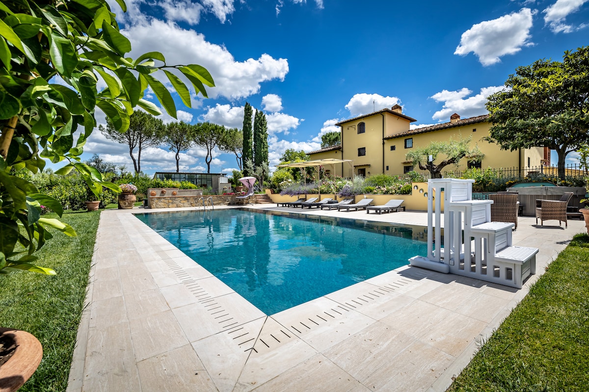 優雅迷人的別墅,景觀景,坐落在距離佛羅倫薩大教堂幾公裏的山頂上。 此房源總共可接待18位房客。 5間臥室配備冷氣 6間浴室 網路WiFi免費,快速 不含暖氣和電力