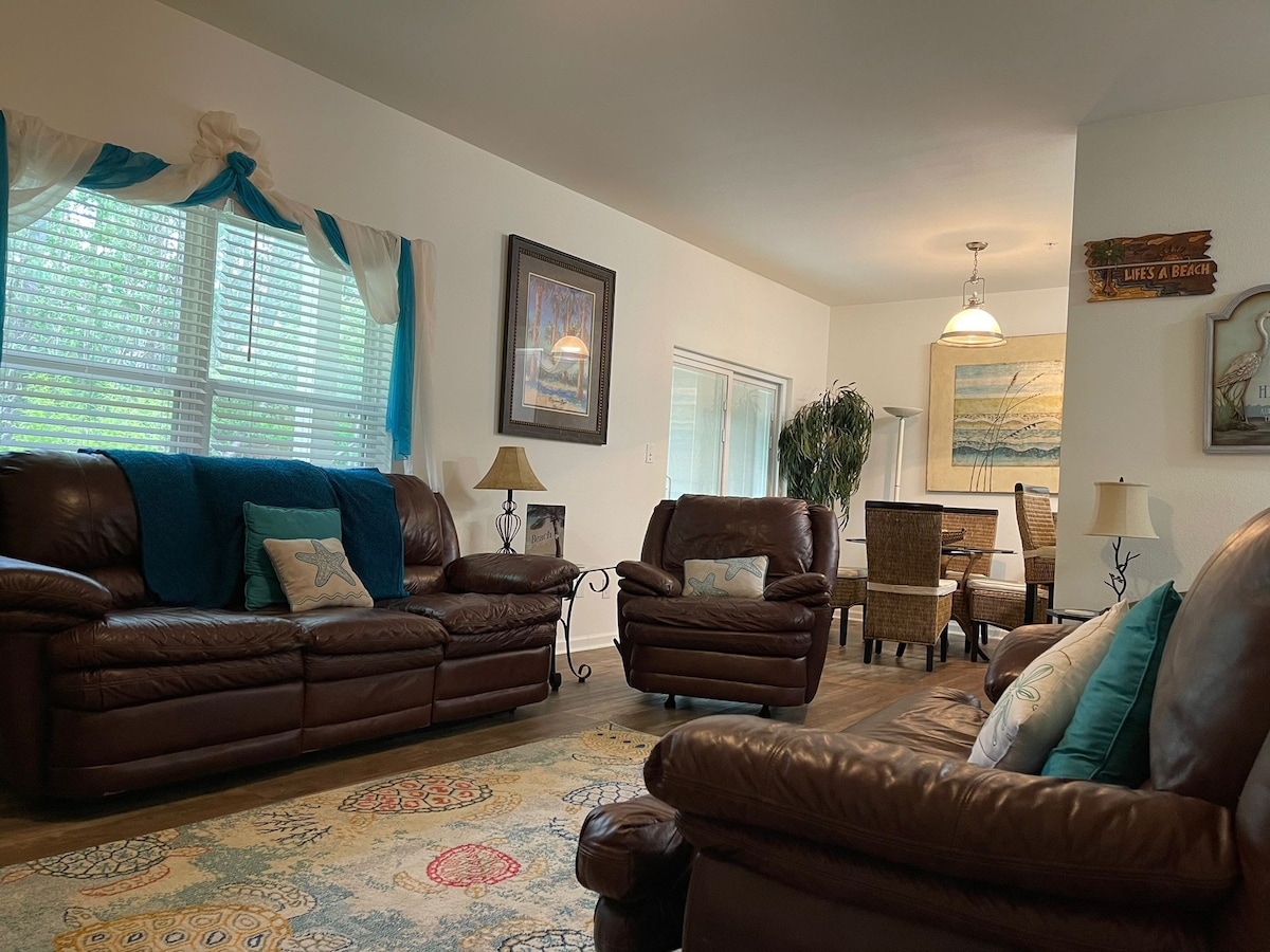 Boho Bungalow位於安靜的公寓,設施充足。 此空間有3間臥室,均配有55吋電視、2間浴室、洗衣機和烘乾機。 您可以隨意使用配備齊全的廚房。 有社區泳池和私人戶外露臺,可與親朋好友一起享用。 此空間旨在創造舒適的住宿體驗,精心挑選的裝飾品將您與海灘連接起來。 入住:下午4: 00 退房時間:早上10:00