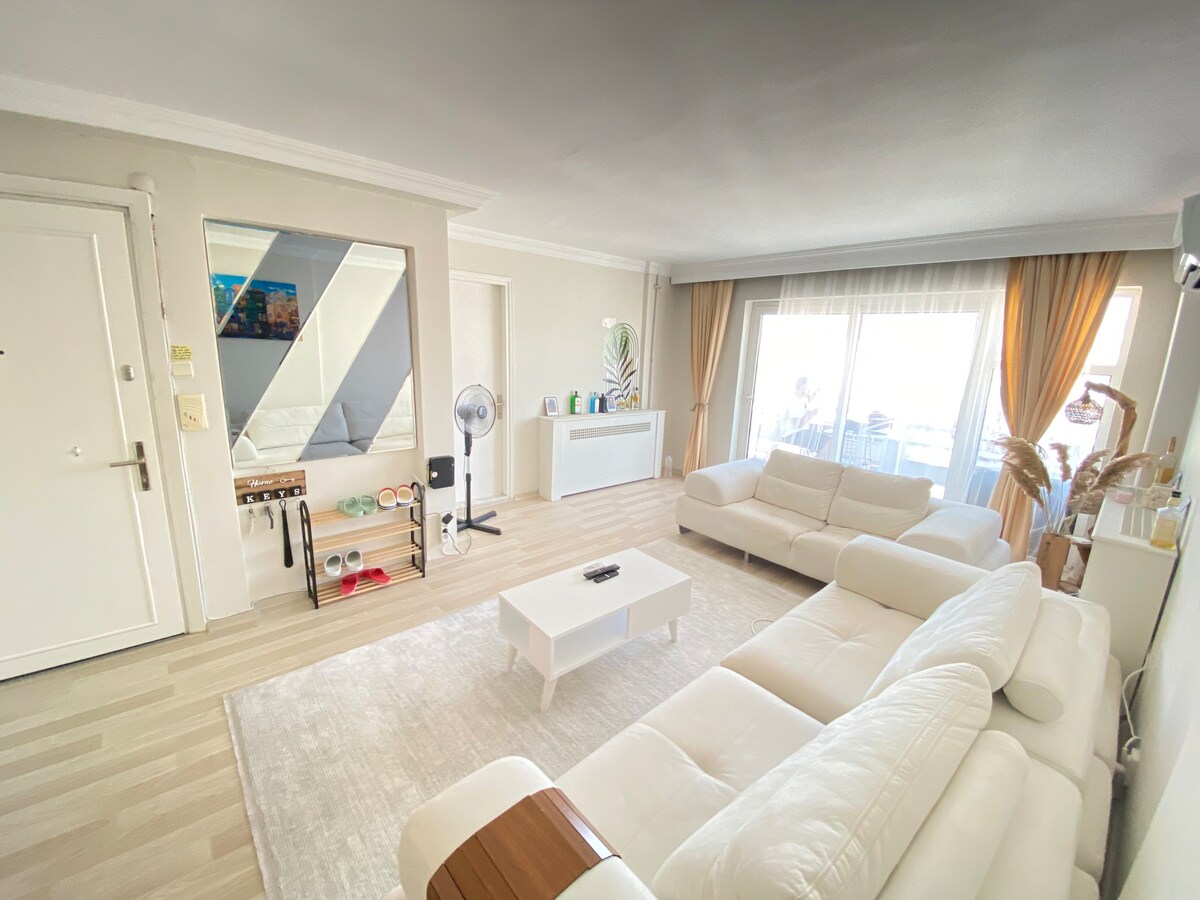 位於Güzelyalı的驚人公寓,面向大海。這是您可以在伊茲密爾的Airbnb上找到的最佳景觀。在市中心,所有酒吧、餐廳、咖啡廳都在我們的公寓下方。3 空調天然氣暖氣、環光電視和音響系統、浴缸,一切都已準備就緒,供您入住。我們的清潔團隊也會在您抵達前清潔所有物品。此外,我們還有特殊停車位(不允許使用面包車)。您可以開車前來,非常方便。我們的大樓有電梯,因此您不需要爬樓梯。
