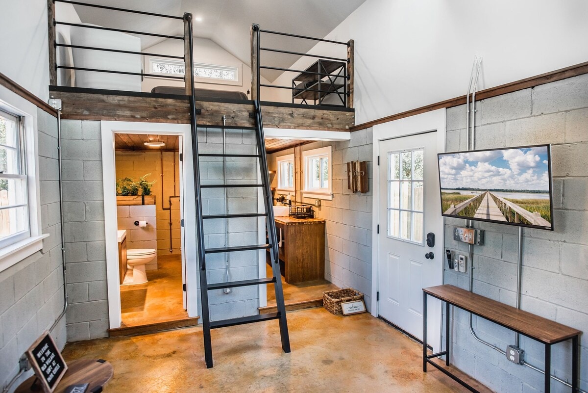 The James is a unique NEW 530 sq ft retro coastal tiny home located in a gorgeous neighborhood on James Island ◡̈ 10 mins to downtown Charleston 12 minutes to Folly Beach Walking distance to restaurants The James sleeps up to 6 people and 2 dogs (NO PET FEE) & boasts a private fenced yard & patio with an outdoor shower and Clawfoot tub! The James is ideal for solo travelers, couples, families, those traveling w/ their dog(s), those w/ limited mobility and groups of friends. #BNB-2023-02