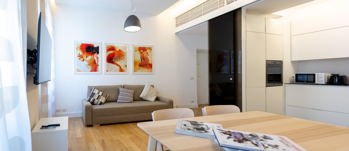 位於特拉斯提弗列歷史建築三樓的設計公寓。 公寓配有1間臥室、1間帶步入式淋浴間的浴室、寬敞的客廳和配有烤箱和洗碗機的島式廚房。俯瞰台伯河,欣賞維托里亞諾紀念堂的景色。 與整個城市的交通非常便利,是參觀附近的威尼斯廣場、羅馬競技場、羅馬廣場、台伯島、真理之口、國會大樓、猶太區以及享受羅馬特色街區的理想之選。