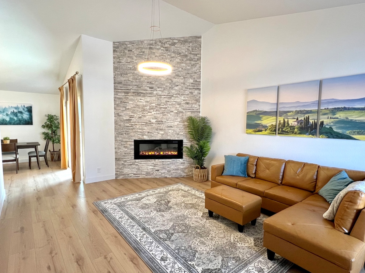 入住這間寬敞寧靜的單間公寓客用套房,忘記您的煩惱。 房源左側的獨立入口,有您自己的後院空間和小酒館桌子。 您的獨立房間配有小廚房,配有烤麵包機、微波爐、迷你冰箱、Keurig咖啡機和各種咖啡膠囊。 寬敞的浴室配有漂亮的浴缸和雙盥洗盆。 智慧電視、寬敞的辦公桌和2把椅子、雙人沙發和電動環境壁爐,讓這裡成為舒適的度假勝地! 距離沙加緬度國際機場僅25分鐘