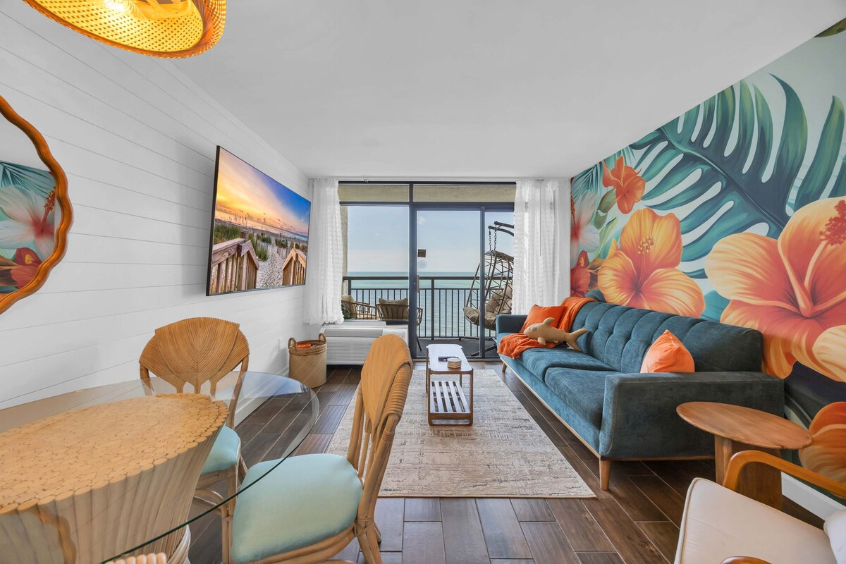 🌊 探索這間全新翻修的 2 房 2 衛套房,每個房間都能直接欣賞到令人驚豔的海景。這間寬敞的套房位於默特爾海灘的中心,最多可容納 10 位房客,非常適合尋求放鬆和樂趣的家庭或團體。🌅兩間臥室均設有私人陽臺,客廳設有落地窗,可 360 度欣賞大西洋海岸的壯麗景色。在✨陽臺上喝咖啡,聆聽海浪聲,放鬆身心,留下無盡的樂趣回憶