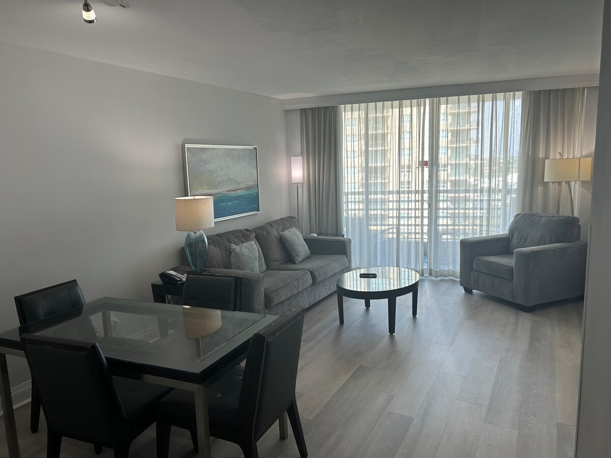 W Residence 12 樓的豪華公寓。 家具齊全的2床/2浴室,可欣賞180°城市和海岸內景觀,陽臺和客廳還有美麗的側海景觀。 現代化廚房,配備頂級電器、室內洗衣機/烘乾機。 度假村風格的設備與服務:海濱服務、泳池、按摩浴池、水療中心、健身中心和客廳酒吧。 只需搭乘電梯即可抵達Steak 954、El Vez & Sobe Vegan用餐。 步行即可抵達W水上計程車、商店、夜生活和海灘。