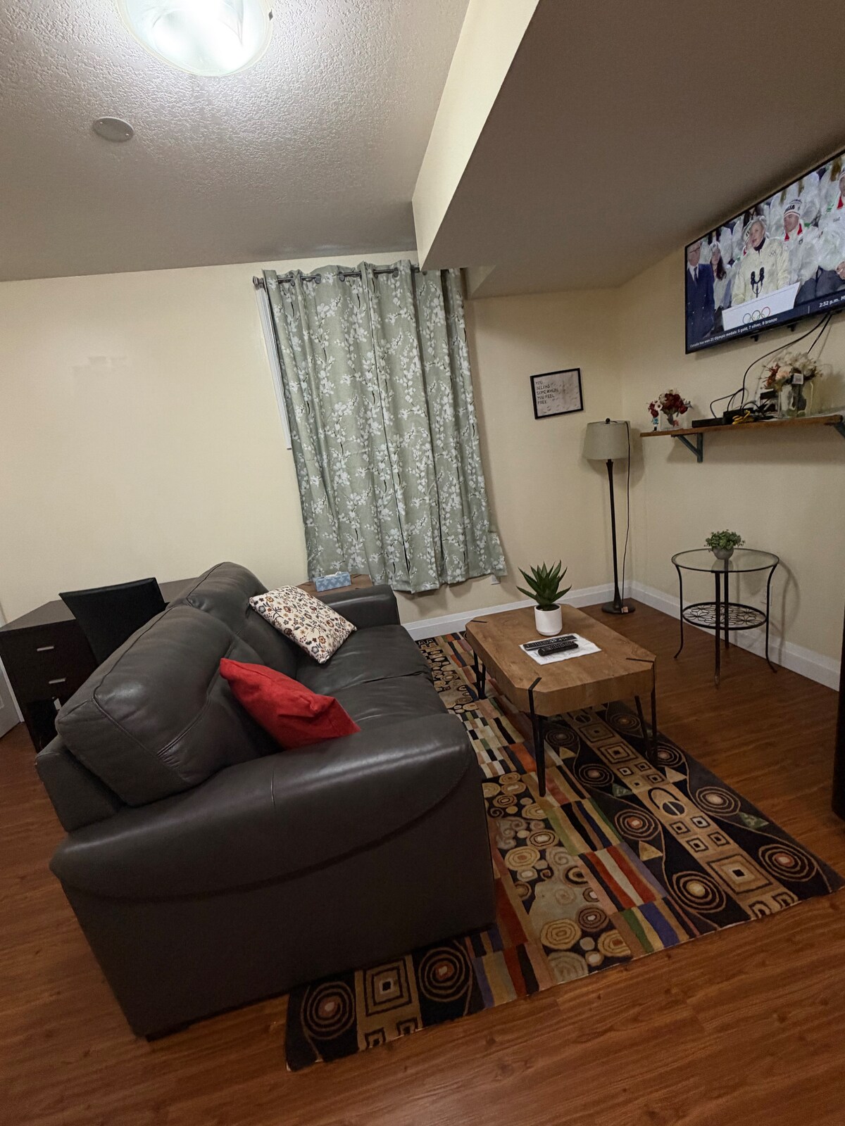 這間現代化的地下室公寓展示了小空間的最佳利用,有2間臥室、3張床、1間全功能浴室、用餐區、全功能廚房和充足的客廳空間。 與主屋分開的獨立入口。這間美麗的公寓配有全套廚房、冰箱、電爐、微波爐、烤麵包機、水壺、廚具、現代化的3件式洗手間。有自己的洗衣機/烘乾機、雙人床、梳妝台、衣櫃空間、電視/網路。 *歡迎公司預訂。請透過Airbnb訊息傳送訊息。