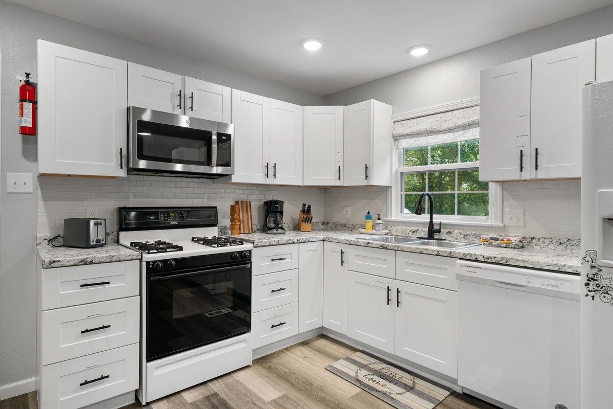 You will LOVE this charming 50's cottage remodeled for your up-to-date comfort. Includes custom shower with rainfall showerhead, new appliances, new front loading washer and dryer, luxury towels and bedding, and more! Located in a quiet, walkable neighborhood on the edge of the Downtown district. Walk to over 10 restaurants, shopping and all downtown attractions! This will be your new "go to" place when visiting the Fort Smith area or just passing through. Convenient parking in front and rear!