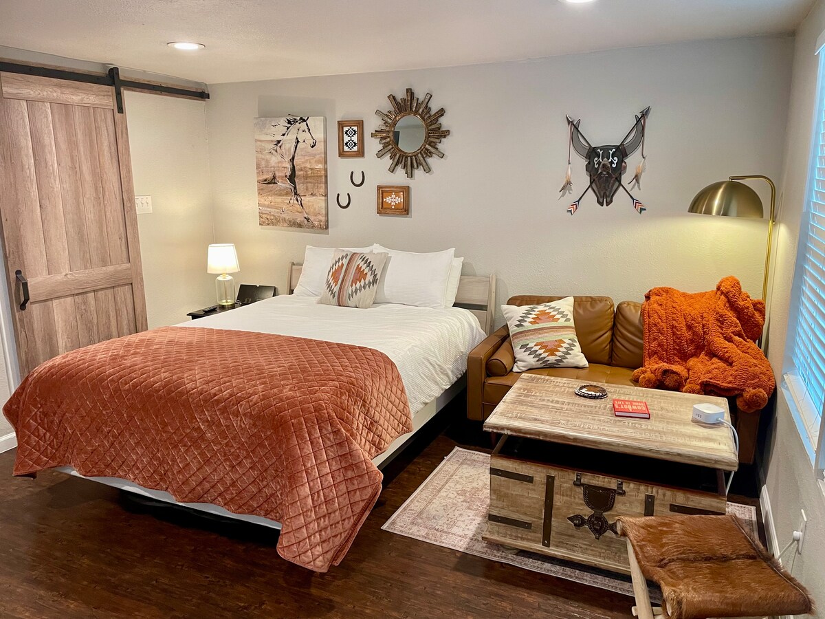 這間時尚的微型住宅距離市中心5-7分鐘車程。 物有所值,為房客提供許多舒適的住宿體驗。 享受Cowtown提供的所有服務,提供免費停車位、火坑和免費的固定設施。 這棟舒適的房子適合狗狗入住,配有電視、WiFi、共用後院、步入式淋浴間、桌遊和洗衣機/烘乾機,讓您感到賓至如歸。 這個街區充滿活力、吵鬧、色彩繽紛,包括當地人騎馬!