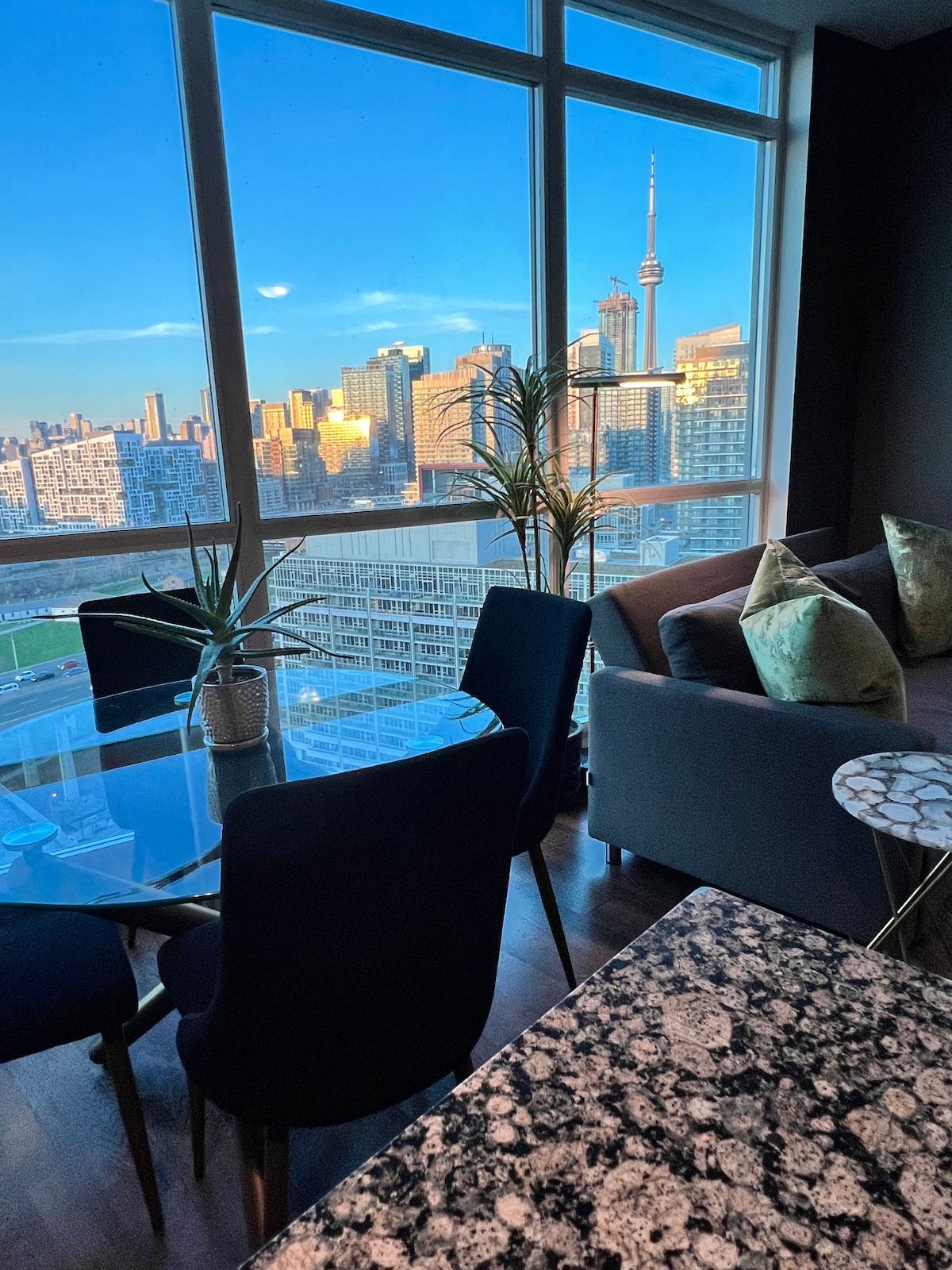 寬敞的1牀+ DEN現代公寓,坐落在市中心。 距離湖泊、公園、休閒中心僅幾步之遙。 步行即可抵達加拿大國家電視塔、聯合車站、羅傑斯中心、會議中心。 → 高速WIFI非常適合在家工作、視訊通話和串流 → 約620平方英尺/57平方公尺 → 專屬工作空間 → 60英寸QLED電視 → *全新2024年*設備齊全的廚房,配備廚具 → 步行即可抵達餐廳和夜生活 → 距離雜貨店、酒類專賣店和城市交通網路( 94 Transit Score )僅幾分鐘路程