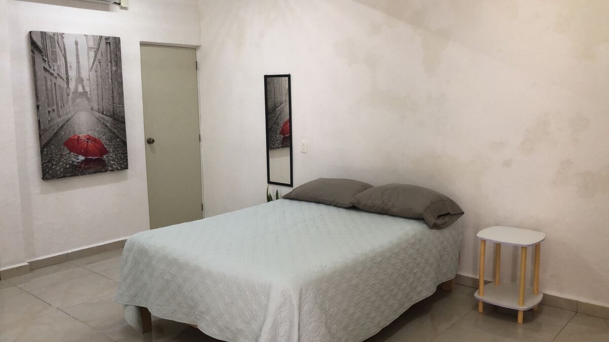 Disfruta de tu estancia, te ofrezco un alojamiento que se destaca por su armonía , limpieza y seguridad . Por encontrarse en una avenida principal podrás tomar un taxi sin dificultad a cualquier hora. Sobre la Avenida prinicpal encontraras : Restaurantes 120m. ;Farmacias y Hospital 170m ; lavandería 100 m, panaderías y fruterías. Tendras: smart T.V , WiFi , A/C, Cama Queen size, estacionamiento. Puedo ir por ti al aeropuerto o Terminal de Autobus ( Previo Acuerdo ).