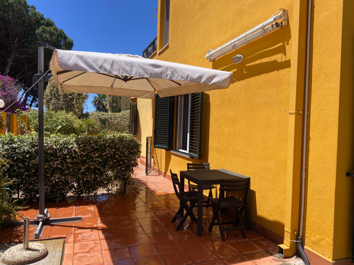 全新獨立單間公寓,面積30平方米,配有大露臺,可在此用餐和曬太陽。 距離海邊僅幾步之遙,可欣賞卡利亞里灣和著名的魔鬼鞍(Sella del Diavolo)的壯麗景色。您可以舒適地躺在床上欣賞大海。 位於別墅的一樓,可通過外部樓梯獨立進出。 配備所有舒適設施:小廚房、淋浴間、冰箱、電視、WiFi、空調、床單、毛巾、沙灘巾和遮陽傘。