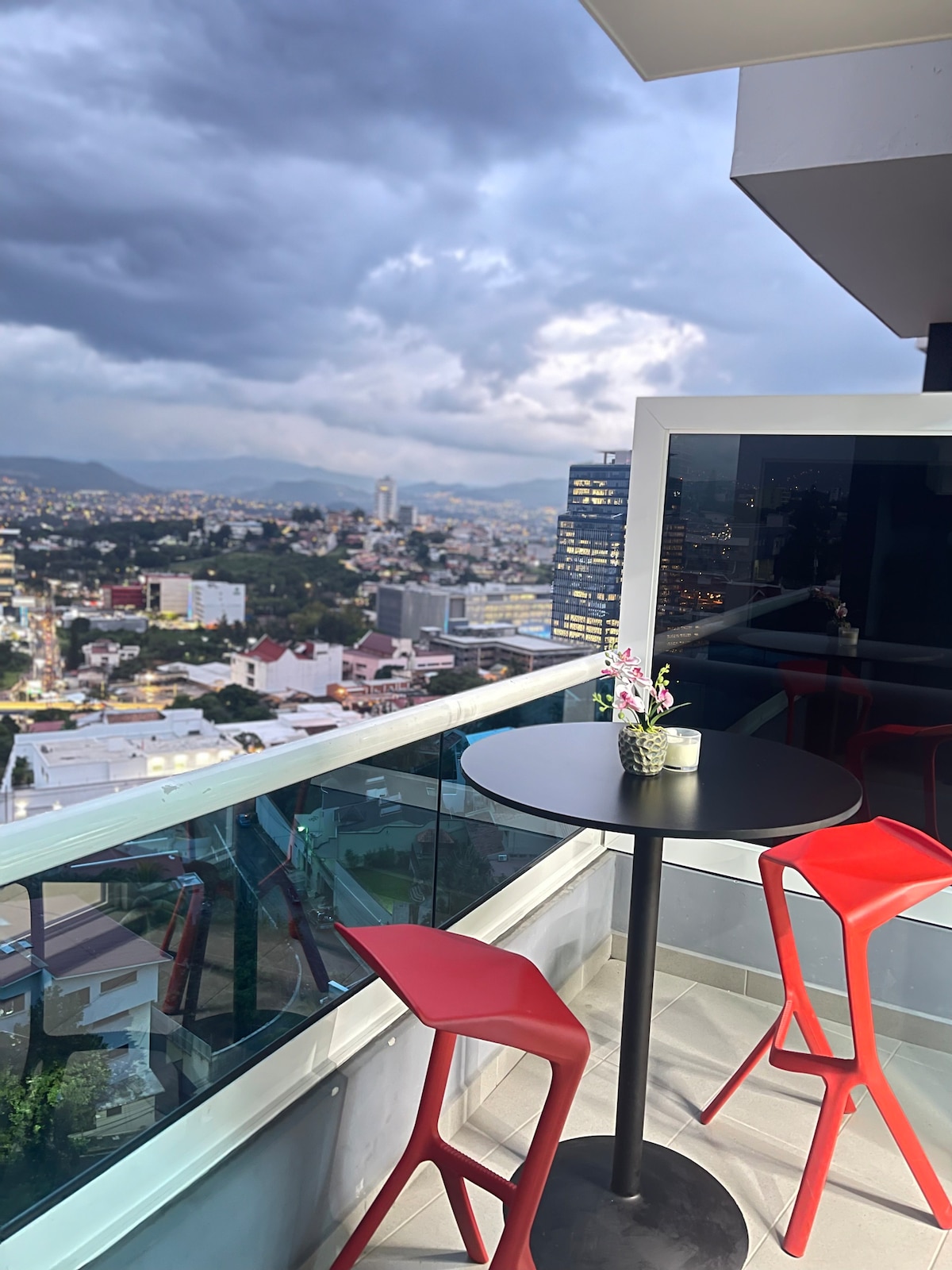 The delightful feeling of being inside of a hilltop cabin, breathtaking views of Tegucigalpa's thriving central business district from an over-sized terrace, and an eclectic open-concept biophilic design aesthetic combine to make Penthouse Casita an unforgettable stay on your next trip to Tegucigalpa.