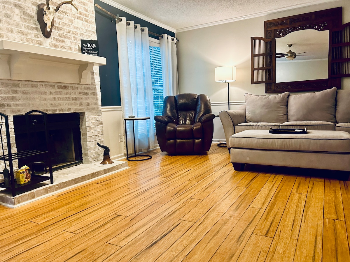 In the heart of Wake Forest. Relax by the fire pit with bamboo offering privacy to feel miles away. Relax with drinks in the hot tub while your food is on the grill. Then unwind after all your relaxing in large Jacuzzi tub in master bath. Wood burning fireplace and dart board in the living room make for a fun night at home. Huge rooms and very comfy beds & pillows and flat screens & Roku in every room!