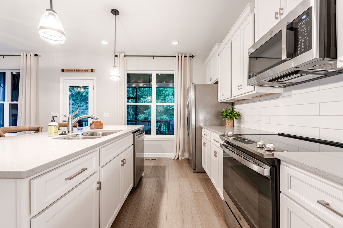 寧靜的湖泊度假勝地,可前往碼頭,並設有帶瓦斯壁爐的遮蔭門廊。3間舒適的臥室、2.5間浴室、設備齊全的廚房、配有75吋電視的電影室和貼心的裝飾,非常適合家庭、情侶或小團體入住。 安靜、舒適、為創造回憶而打造,田納西威士忌是您遠離家鄉的家。 我們距離標誌性的Jack Daniels、Nearest Green和George Dickle釀酒廠只有很短的車程。 預訂住宿,體驗完美的度假勝地!