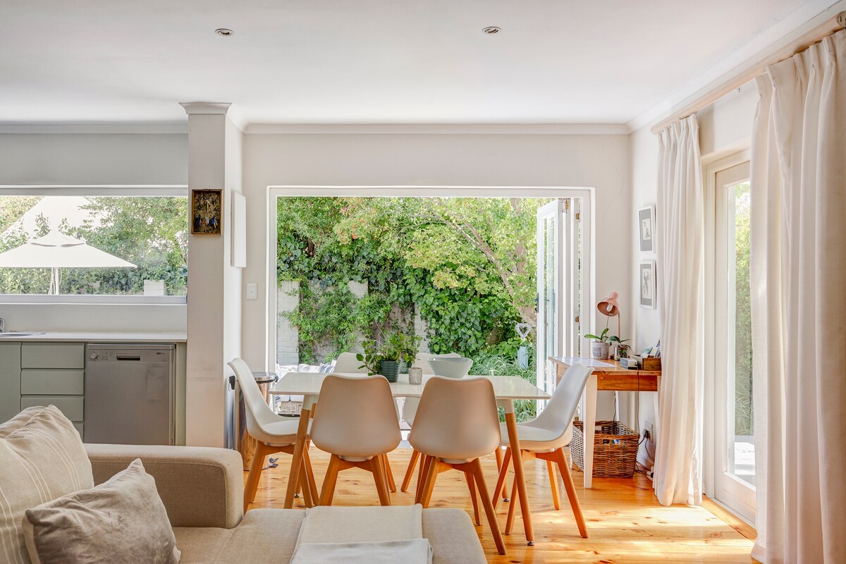 This gorgeous, newly renovated cottage sits right on one of Franschhoek's most beautiful heritage streets, smack dab in the heart of everything! You can literally walk to all the amazing restaurants and shops the village has to offer, but it's also fully kitted out for self-catering if you want to stay in and cook up something special. It's sunny, warm, incredibly relaxing, and honestly just absolutely delicious - the perfect little escape you've been dreaming of!