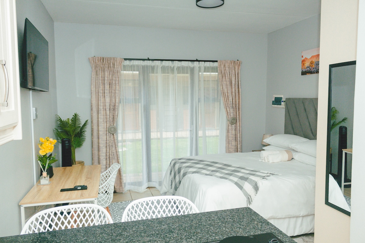 寬敞的城市套房,毗鄰寧靜的綠色區域,有一間開放式臥室、小廚房和浴室(帶淋浴間)。 可愛的室外空間和座位區域。 安全停車位,配有監控攝影機。 無上限的光纖網絡和WiFi ,配備電視和Netflix。 靠近健身房( 1.7公裏) ;餐廳和酒吧。 + -距N1 3公裏。 + -距離自由州大學6公裏 + -距離灰色學院7公裏 + -距離醫療診所醫院和含羞草商場7公裏