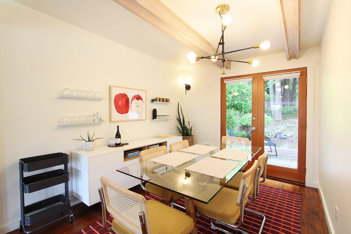 A quiet retreat with expansive water views & backdrop of lush Maple, Cedar & Fir trees. Be w/nature -Relax on the large deck, take in 100’ waterfront views, spectacular sunsets or stroll down stairs to our private beach. Be nourished -Prepare meals in this sizable kitchen filled w/Stainless Steel appliances. Be Inspired -Separate studio space to create-journal, write, practice yoga, meditate, draw, read, finish projects or simply slow down. Do things you haven’t had the time & space to do here