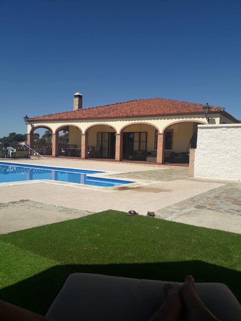 Reg.Turismo: TR-BA-00110 Casa de 4 dormitorios con chimenea, barbacoa, jacuzzi, dos piscinas valladas, pista de fútbol, baloncesto, ping-pong, huerto, gallinas ecológicas y picadero para caballos. Ventiladores de techo en toda la casa. Estación de carga eléctrica en la finca. Gratuito. Se admiten mascotas. Mucha paz y tranquilidad. Vistas impresionantes. Desde el porche, se ven muchos pueblos de la comarca, bosque de pinos, castaños, olivos, higueras y encinas. A 45 Km de Sevilla o Mérida.