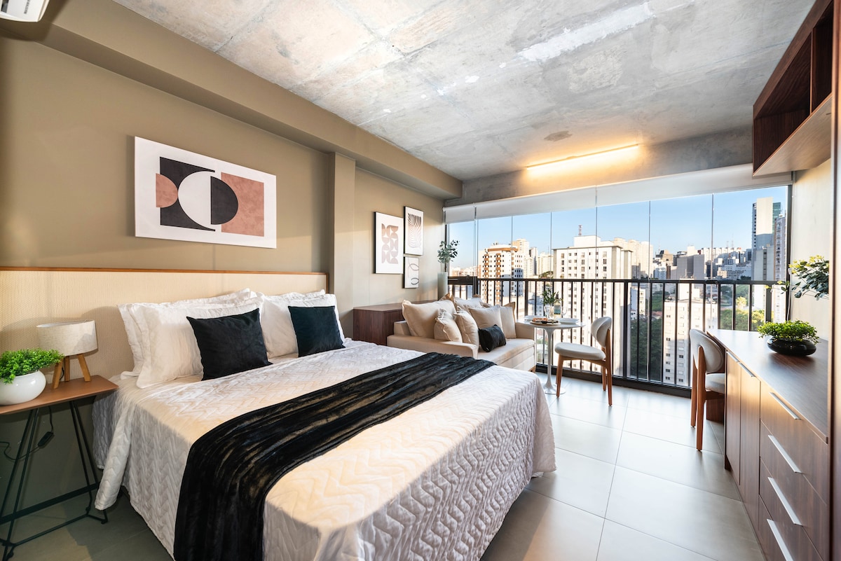 Bem-vindo a este estúdio amplo no coração de São Paulo, oferecendo conforto e segurança. Rooftop com piscina, espreguiçadeiras, academia e no térreo lavanderia, coworking, pet place e mais. Varanda integrada, ar-condicionado, cama queen size, excelente roupa de cama e banho. Bairro da Consolação, convenientemente localizado na Rua Frei Caneca, conta com Oxxo conveniência no térreo, Shopping e Centro de Convenções a poucos passos, próximo a restaurantes, lojas e vida noturna agitada.