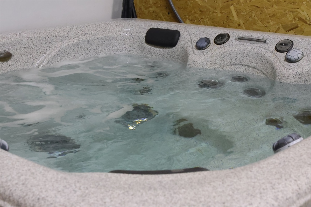 舒適的原木小屋,配有按摩浴池
