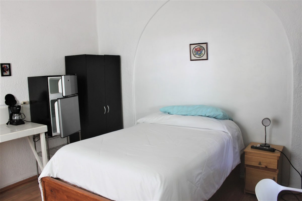 寬敞美麗的閣樓、小廚房、帶淋浴間的獨立浴室、獨立出入口、一張雙人床、一張全尺寸床。 距離主廣場兩個街區,步行即可抵達市場、Frida Kahlo和博物館。周圍有商店、餐廳、圖書館、劇院、旅遊巴士和酒吧。 為了安全考量: 不允許外部訪客(未經事先同意)如果您邀請外部訪客,可能會導致被驅逐或取消您的預訂