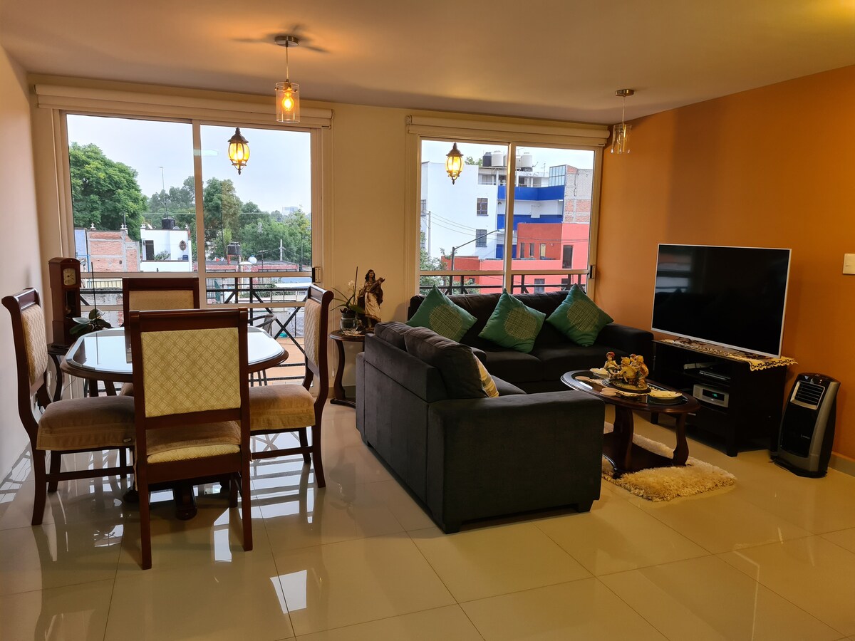 Precioso departamento de lujo a dos cuadras del museo Frida Kahlo, el corazón artístico de Coyoacán. Cuenta con dos recámaras con camas king y matrimonial. Un baño completo, sala de estar para cuatro personas, cocina completamente equipada, comedor y terraza privada. Equipado con internet de 50 mbs. Cerca del museo Frida Kahlo, Viveros de Coyoacán, mercado de artesanías, iglesia de Coyoacán, Cineteca Nacional, y cantidad de tiendas y restaurantes.