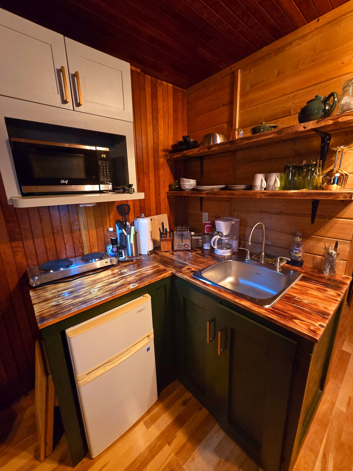 Behold The Emerald Suite. This little gem is just steps away from one of North Frontenacs premiere lakes. This efficiency suite is located within the main building of an established 1920's lodge that is rich in character. Perfect for a single or couple wanting a cozy getaway.