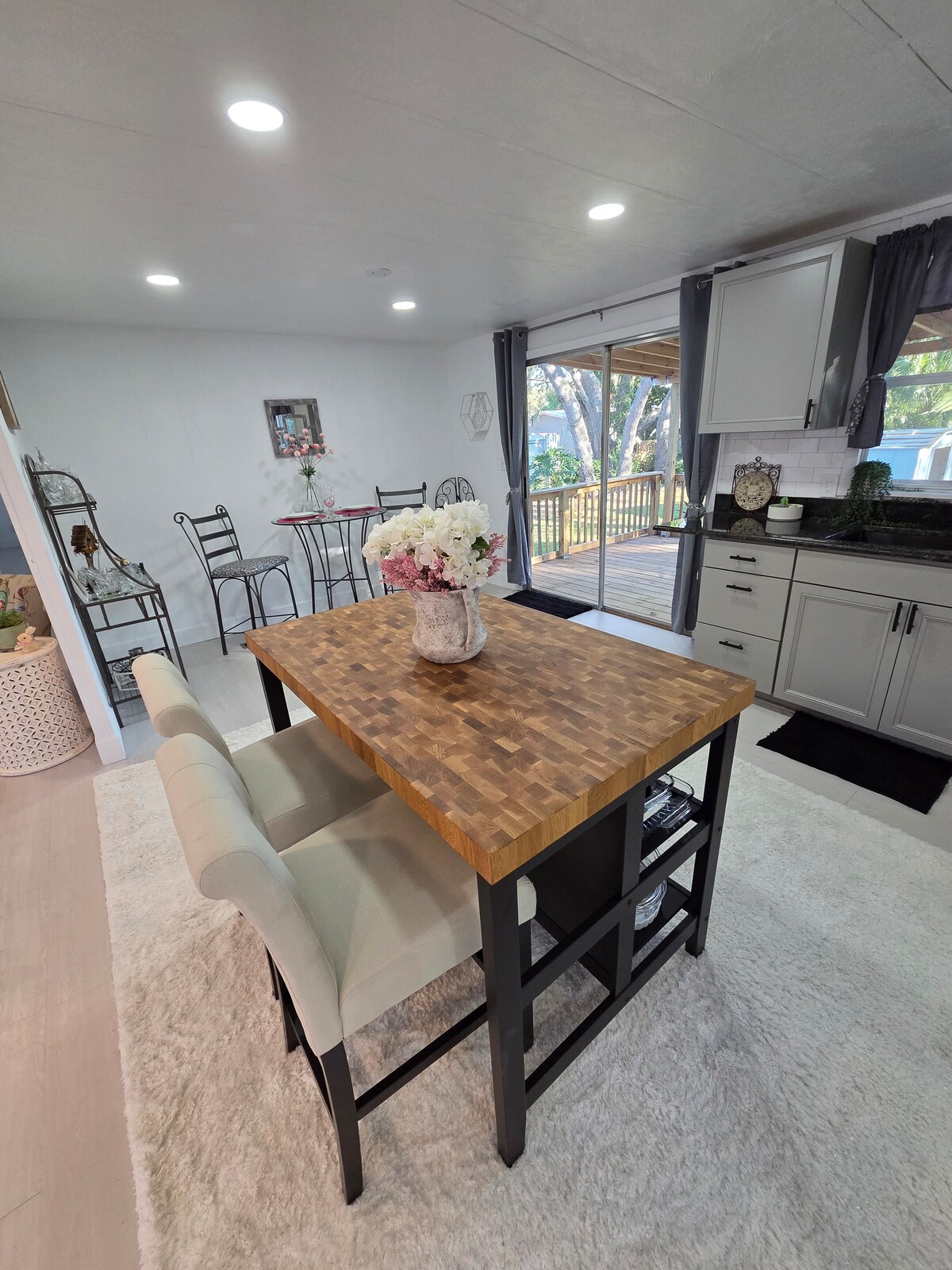 可愛、安靜、全面翻新的3/2,靠近The Villages和Hwy 441/27 in Fruitland Park/Lady Lake中可以想像到的所有設施。 全面改造的房源位於1/3英畝,後院有漂亮的圍欄。 坐在廚房滑梯外的門廊上,享用早晨的咖啡。 後院還有一個營火設施。 放鬆一下!房源配備 2 張加大雙人床、1 間配備男女雙洗手台的主臥室、客廳配備 55 吋電視、辦公空間、配備廚具的廚房島台,以及 6 人座餐桌和椅子。