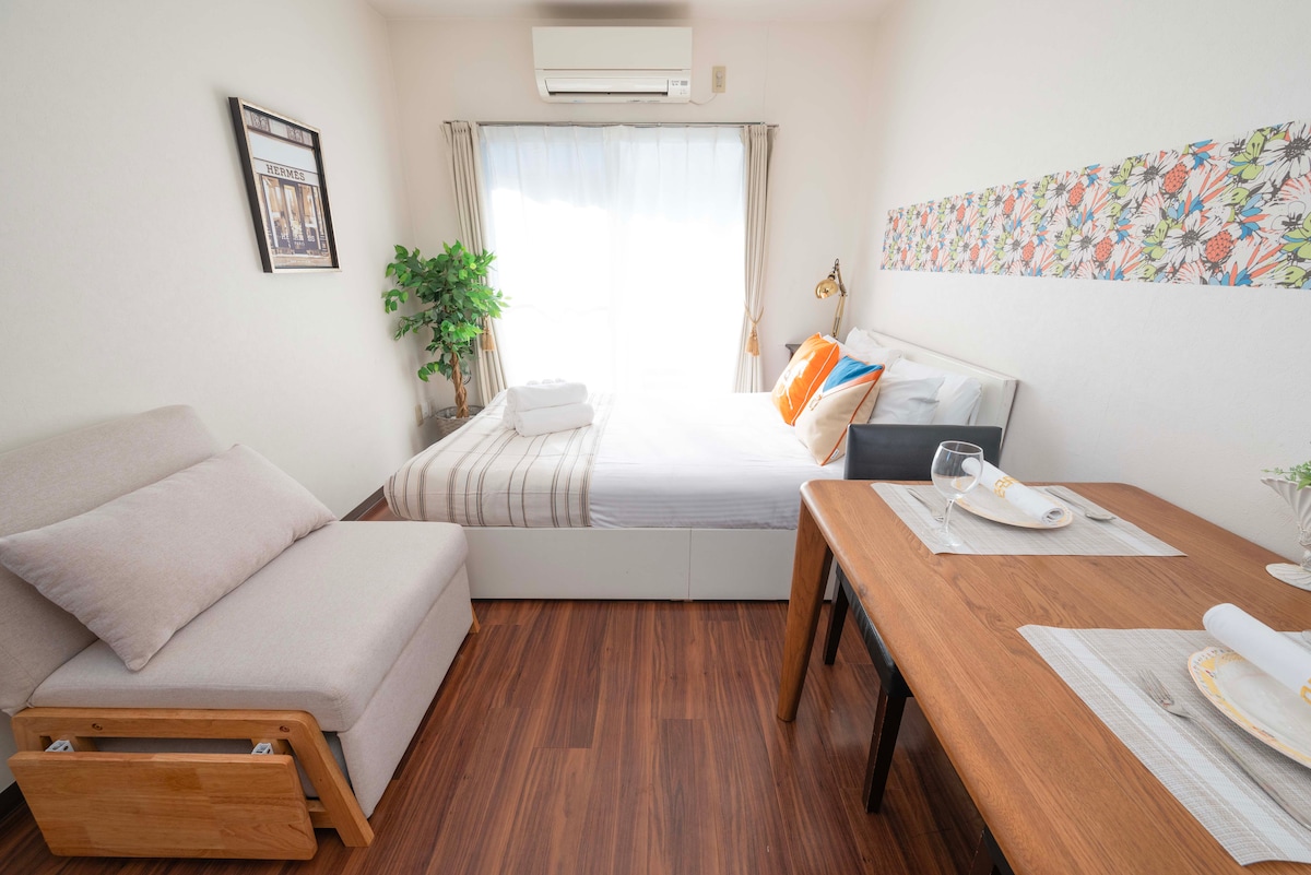 我們在東京最受歡迎的住宅區之一翻新了一套單間公寓。距離公寓最近的車站是三鷹站(Mitaka Station),您可以在14分鐘內到達新宿站(Shinjuku Station),無需任何轉乘!房間配備迷你廚房和洗衣機,步行1分鐘即可抵達超市。推薦長期住宿。在一個安靜的住宅區,您可以放鬆身心,享受您的住宿,同時融入東京的日常生活!