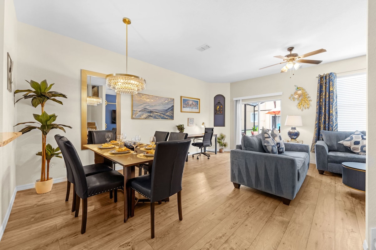 在現代舒適與神奇奇蹟相遇的地方開始和結束您的夢想假期! 這個獨一無二的度假勝地一定會讓在奧蘭多尋找冒險的家庭以及尋找放鬆、浪漫度假的情侶感到滿意。 地理位置優越,距離迪士尼、環球影城、海洋世界、許多餐廳、旅遊景點僅幾分鐘路程,前往SR417和I4等主要高速公路也很方便。 *包括免費WiFi、Netflix和Disney + ! *嬰兒車、嬰兒門、高椅子、嬰兒床、幼兒床