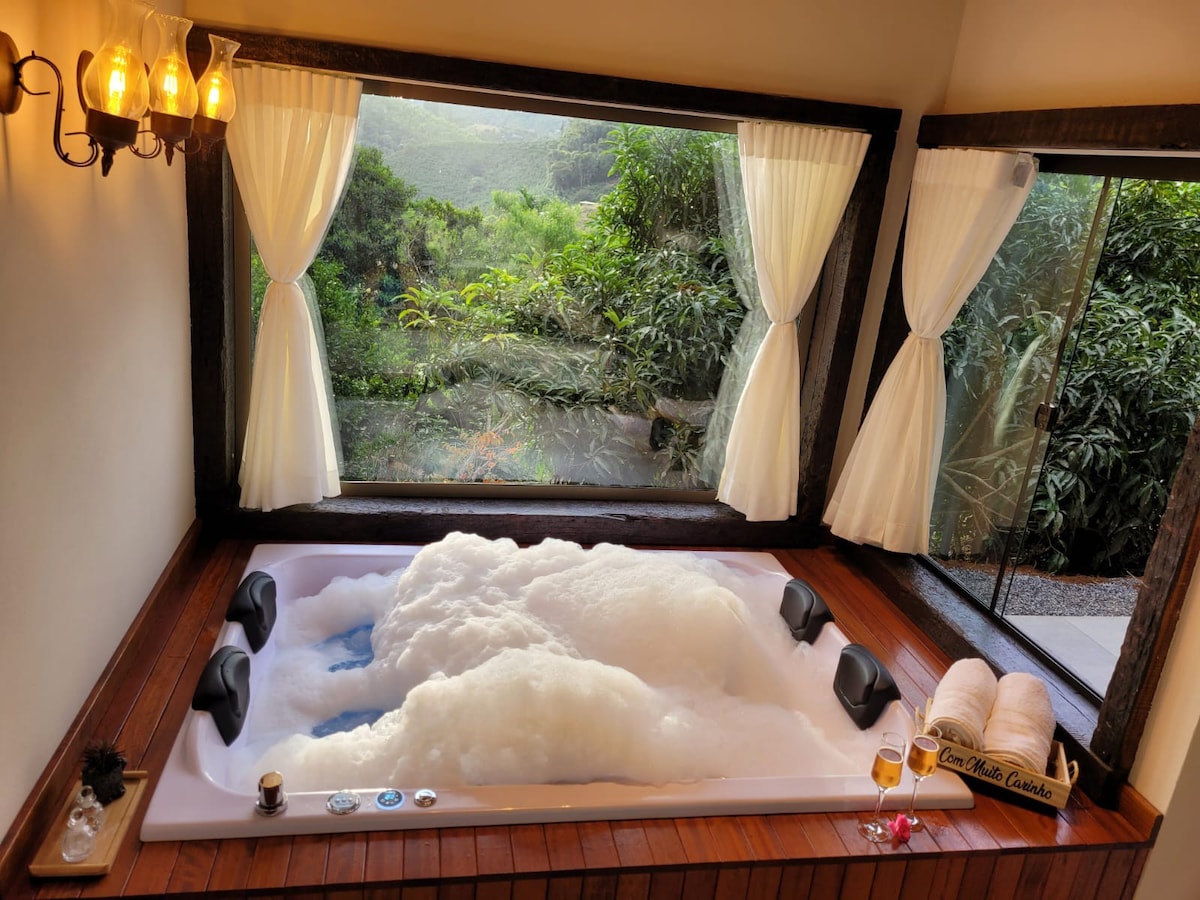 浪漫小屋 Manacá 配有日式浴缸、壁爐和吊床