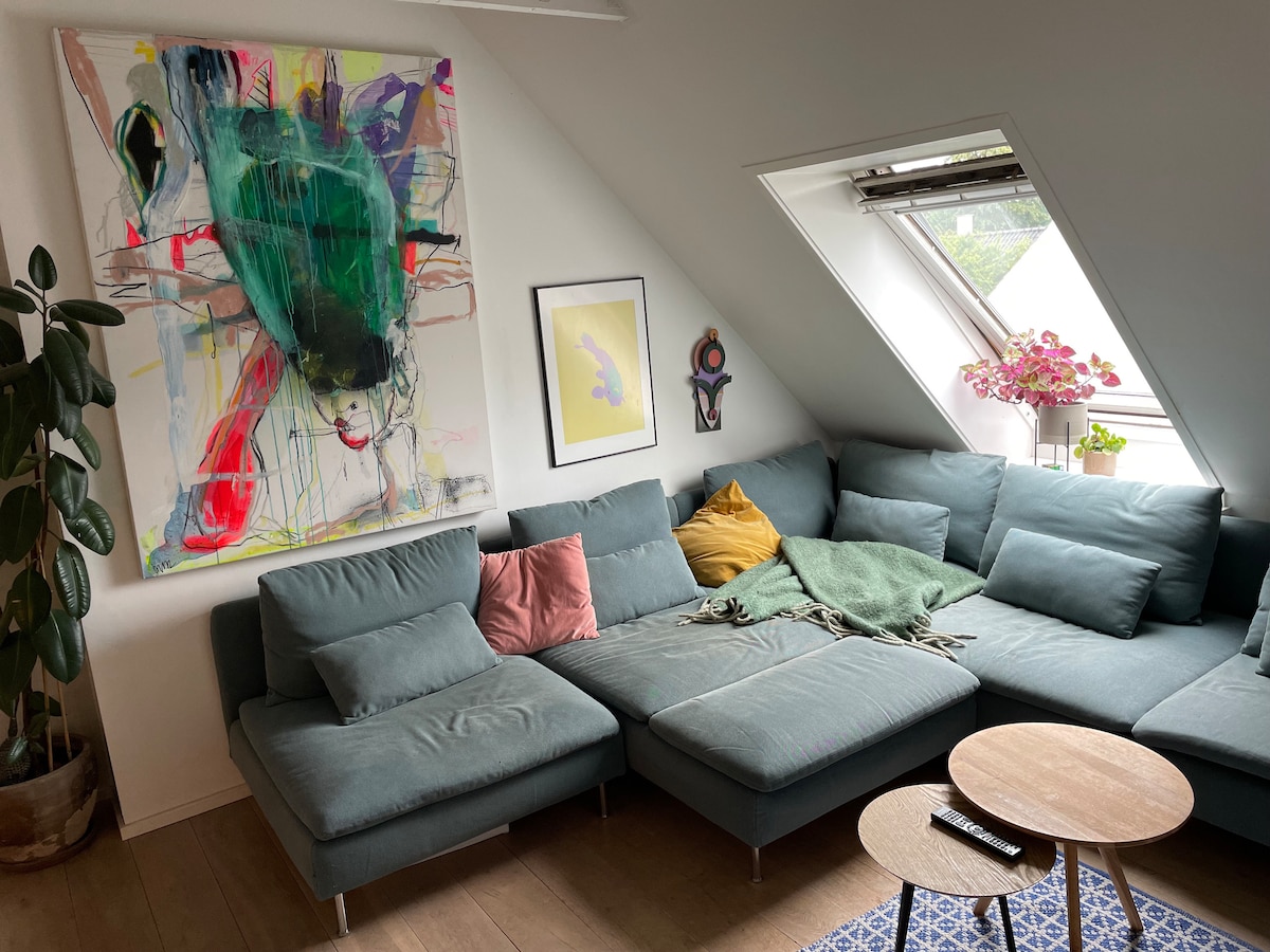 2間臥室和1間客廳。 自家廚房。很棒的舊房子,有花園和湖泊。 靠近車站和購物。 森林和美麗景觀。開車25分鐘即可抵達哥本哈根市中心。 歷史悠久的房子,景觀美麗-充滿氛圍。 共用廚房和衛生間/淋浴間。 共用花園和湖泊。 房屋有3層樓。 下層是出租的。 我們和2隻貓、3隻雞和一隻溫馴的狗住在這裡。 我們住在房子裡