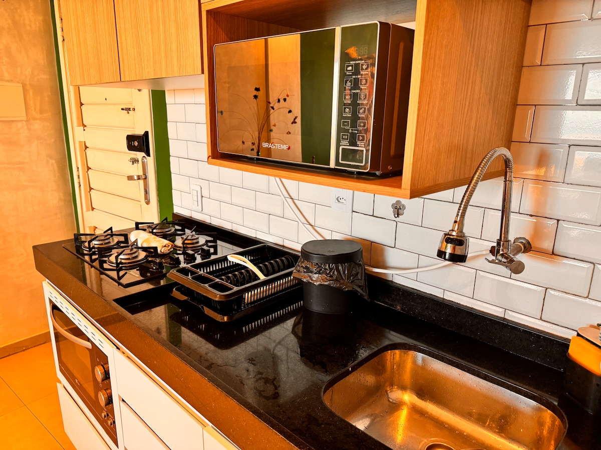公寓內有45平方公尺的公寓,擁有完整的休閒區域、安全和舒適性,專為短期和長期住宿而設計。 非常適合情侶、團體旅行休閒/工作或有孩子的家庭。 最多可容納4人的建築。 我們距離海灘公園1公裏,可欣賞美麗的海景和該地區。 距離藥店、麵包店、市場、餐廳僅一步之遙。 對於那些想擁有舒適和品質良好的地理位置的人來說,是該地區性價比最高的房源。