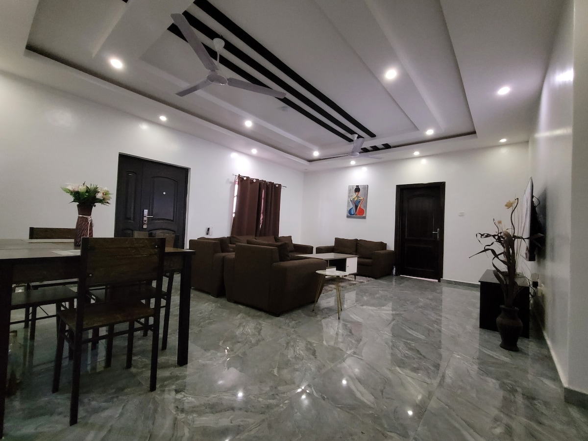 這間復古公寓位於連接所有主要道路網絡的戰略位置,讓您輕鬆克服高峯時段的交通。 距市中心約30分鐘車程。 獨家家具,配有24小時全天候人員,是和平與安全的最佳選擇。 步行5分鐘即可抵達SPA超市、Cash Point ( ATM )、Forex Bureau、Spa/Saloon、酒吧、雜貨店和餐廳。開車約30分鐘即可抵達阿克拉海灘和旅遊景點。