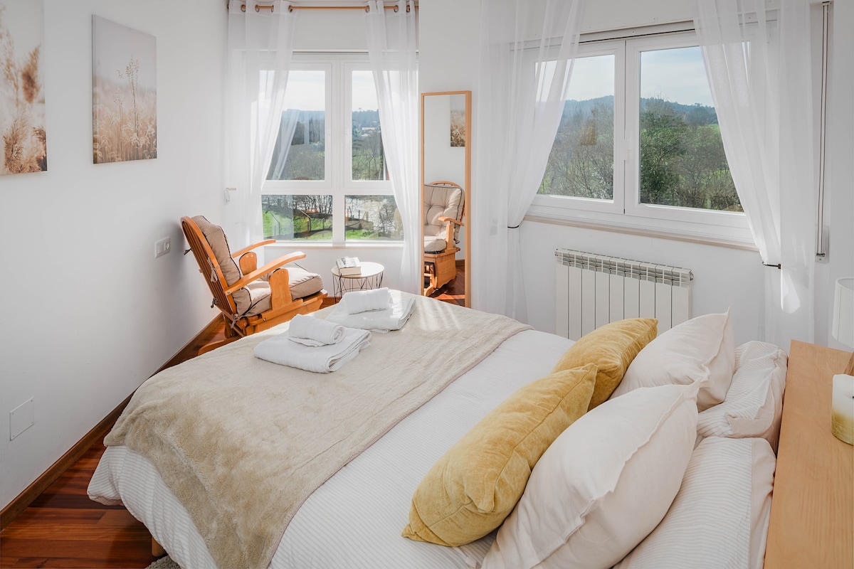 享受阿斯圖里亞斯(Asturias)人跡罕至的獨特山谷的真正寧靜。Casa del río (河畔小屋)遠離噪音。來享受這個優越的位置,四周環繞著原生森林,步行即可到達湖泊。 La bodega (地窖)是一間一臥室公寓,一樓有獨立浴室、廚房和客廳。臥室可俯瞰山谷景觀。廚房設備精良。這間公寓有自己的獨立露臺,朝南。