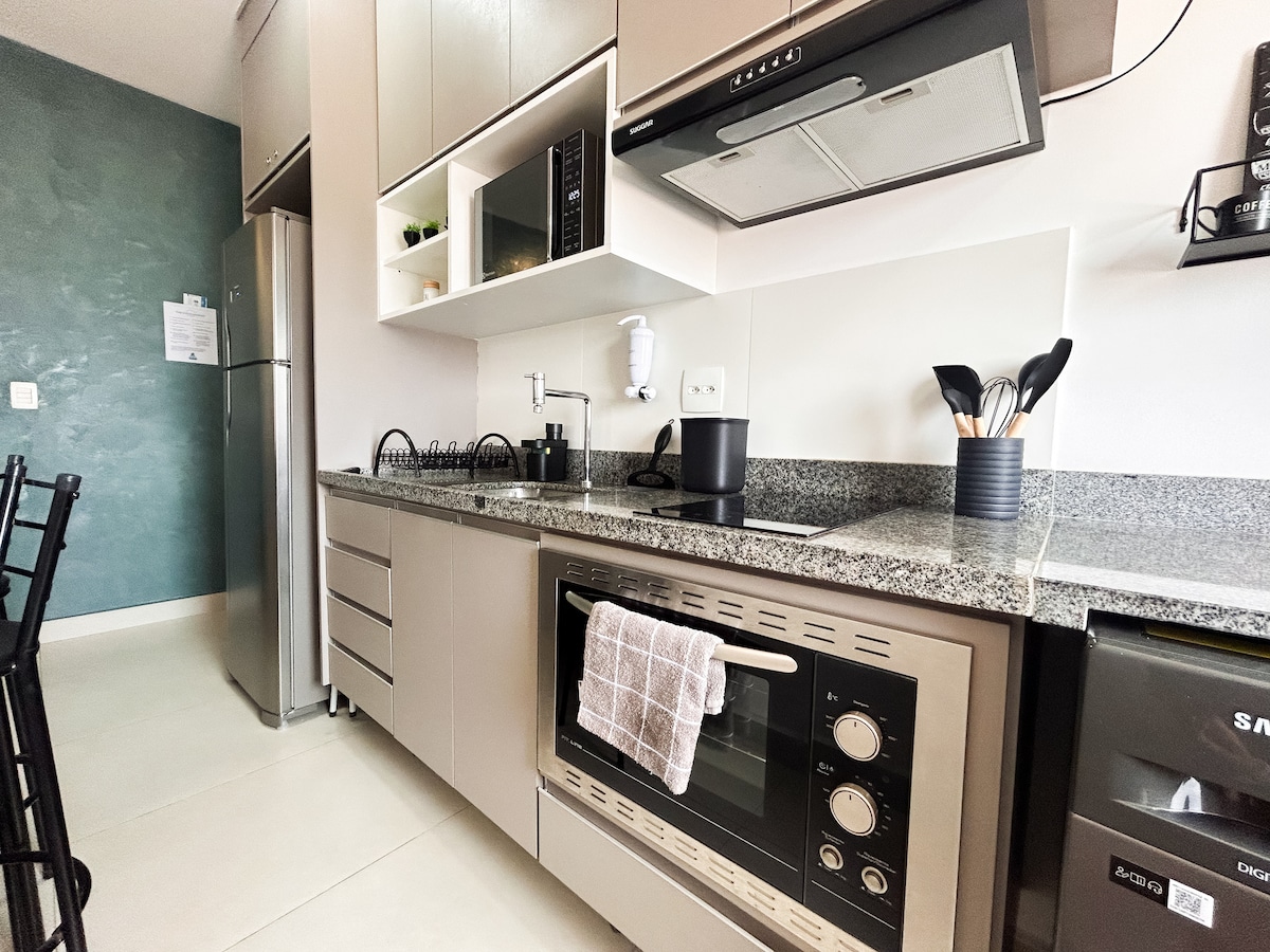 Studio moderno, luxuoso ,de 47m², localizado em condomínio residencial à Rua Duque de Caxias, 880, a passos de distância do Cambuí. Próximo a bares, restaurantes, supermercados, cafés e muito mais. Lindamente decorado e equipado, cama tamanho queen, closet, água quente em todas as torneiras, cafeteria Nespresso, 2 aparelhos de ar condicionado, TV 50" giratória (acesso da sala e quarto), ducha higiênica no banheiro e estação de trabalho para duas pessoas. Condomínio com lazer incrível.