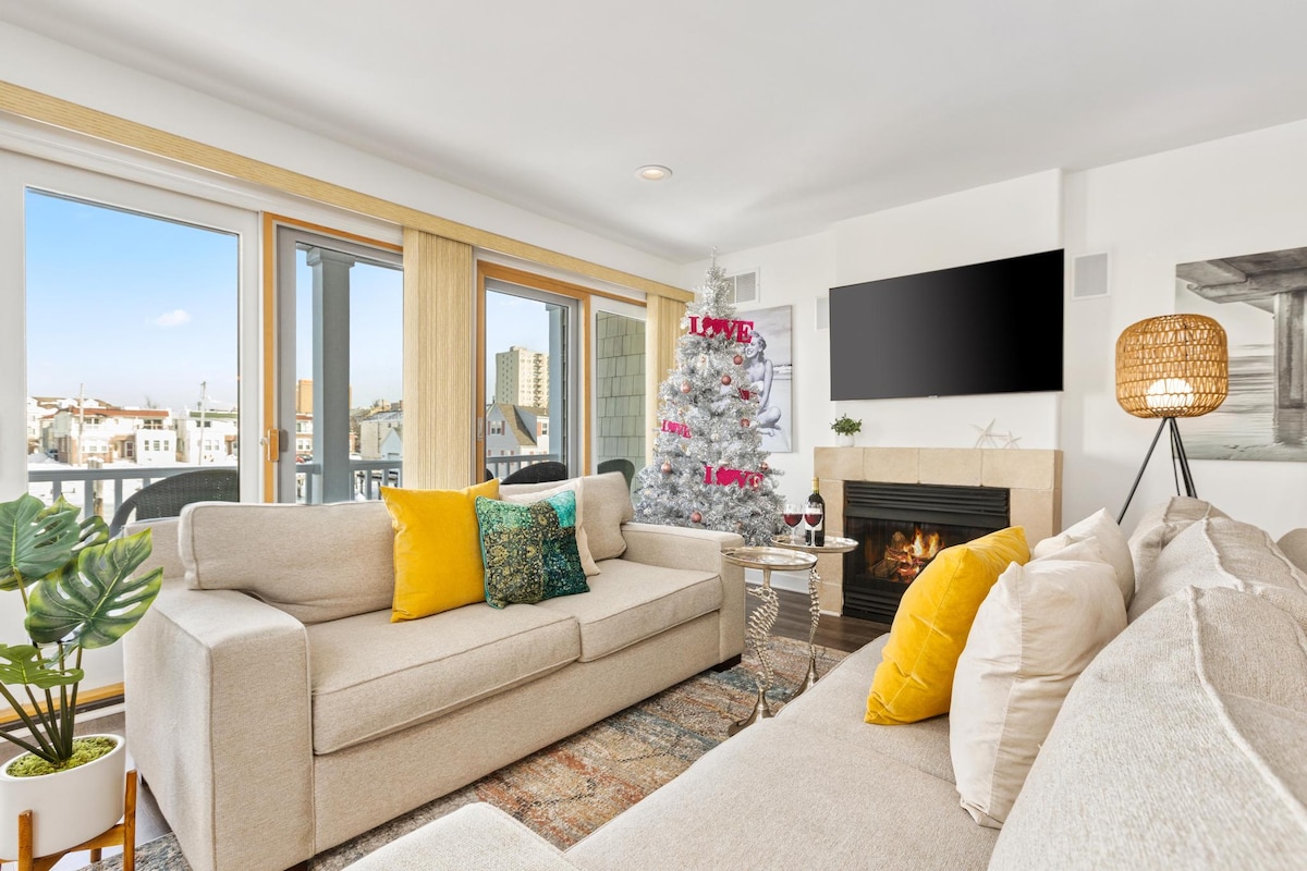 全新翻修的單間公寓-距離海洋城步道僅幾步之遙-可欣賞側面海景。 這是一個優越的位置,步行即可抵達海洋城的一切! 我們的空間緊湊而小巧,但非常適合2人入住,配有一張大床! 臥室尺寸為16英尺x 12英尺,配有全尺寸附設浴室和壁掛式壁爐,讓您度過舒適的夜晚。 住宿期間,您可以使用兩張海灘通行證和房間內的海灘椅。
