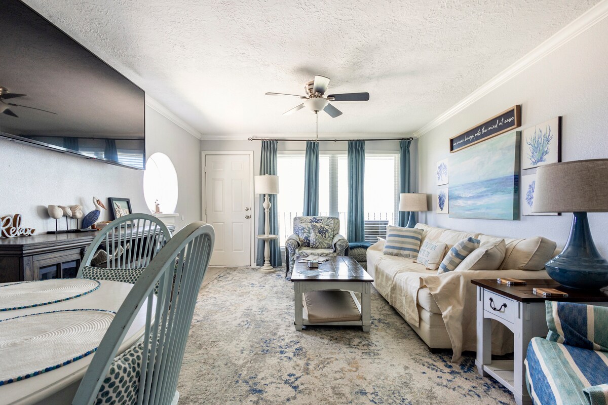 Relax, unwind and enjoy. Watch a sunrise over the ocean from your balcony, fish on the pier across the street. Great restaurants and history welcome you to Galveston. Directly across street from the newly developed Babe's Beach. Unit updated in April/May of 2024. New queen sleeper sofa, coffee table and Smart TV in Living Room. Air conditioner was fully cleaned with duct replacement for efficiency and dust control.