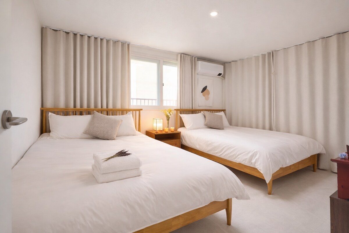 這是一個全新且情感豐富的住宿,您可以在首爾觀光和放鬆身心。 位於一個安靜的住宅區,您可以舒適地結束一天, 這是寬敞明亮的空間,適合所有家庭和團體旅行。 🚇步行5分鐘即可抵達地鐵站 東大門15分鐘,明洞25分鐘,梨泰院可輕鬆乘坐公共交通工具前往 🚌 您可以在住宿前面乘坐152路巴士輕鬆探索首爾的主要旅遊景點。 🌿住宿附近有北漢山和北首爾夢之森。 徒步旅行、步行和從天文台欣賞首爾景觀 推薦給想在城市中享受大自然的旅客。 🏠全新3房2衛結構最多可容納8人, 設有電梯,即使帶著大量行李或與家人一起旅行也很方便。 所有房間均配備空調和烘乾機。我們優先考慮乾淨度和舒適度。 安靜的夜晚、寬敞的空間,前往首爾的任何地方都很方便。 如果您正在尋找一個非常棒的住宿地點,既能觀光又能放鬆身心,這是一個很好的選擇😊