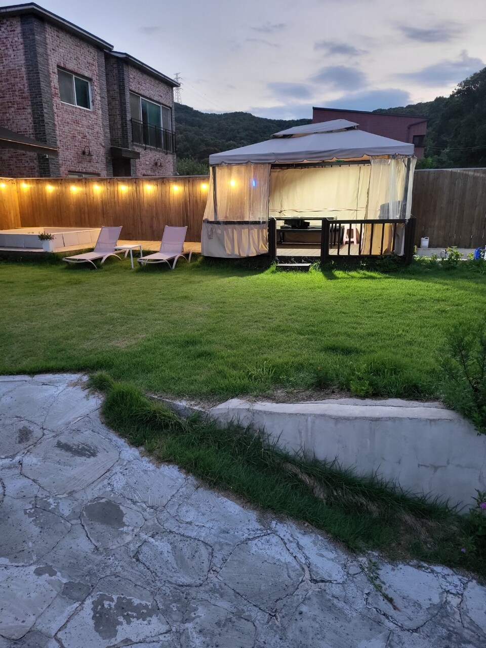 잠실에서 40분 거리의 위치해 바쁜 일상에서 벗어나 맑은 공기와 넓은 독채만의 아늑함으로 완벽한 휴식과 힐링을 원한다면 방문 추천드리는 "고요한 아침” 입니다. 호스트가 직접 관리하는 정원은 봄/여름/가을에 어울리는 꽃들로 가득하고 연못에는 잉어들이 살며, 사계절마다 각각의 매력을 온전히 느낄 수 있는 녹음이 짙은 산속 가운데 있는 곳 바로 "고요한 아침"입니다 :) 고요한 아침은 어린 아이들이 오랜만에 안전한게 뛰놀 수 있는 넓은 앞마당, 숙박공간과 분리되어 있어 냄새 걱정 없이 편하게 식사를 할 수 있는 단독 바베큐장이 매력적인 곳입니다. 특히 이번 바베큐장에 화장실을 새로 만들어서 편의성이 더더욱 극대화 되었습니다 :) 게스트를 위한 충분한 식기류와 간단한 조미료는 준비되어 있습니다.