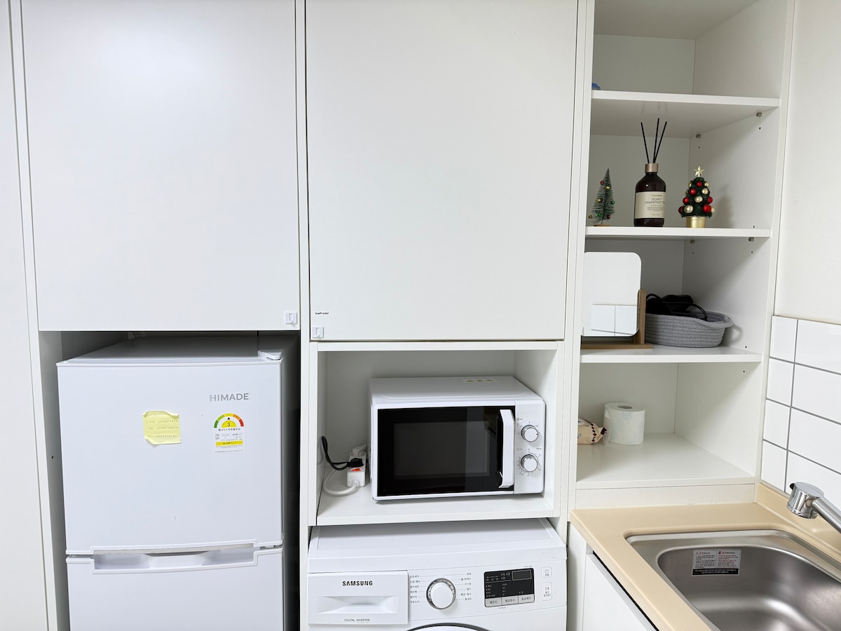 [Hotel Bella] 新建的單間公寓式住宿 這是適合2人入住的空間。 📌 每日更換寢具 📌 水槽 LED 篩選條件 📌 SESCO 安全 📌 我們的住宿不使用Lux或強效化學清潔劑。 對於敏感肌膚的人,我們使用普通洗衣精,讓您安心。 我們的目標是提供更舒適健康的住宿,不會有化學物質的味道。 🚗 車輛登記時可免費停車,先到先得(76 輛車) 💛 入住時間為4點,退房時間為12點。 💛 (我們遵循非面對面入住的原則) * Netflix 和 Coupang Play 會自動登入。 *WATCHA、Tving、Disney、YouTube 等 (你可以在登入個人帳號後完成此操作)