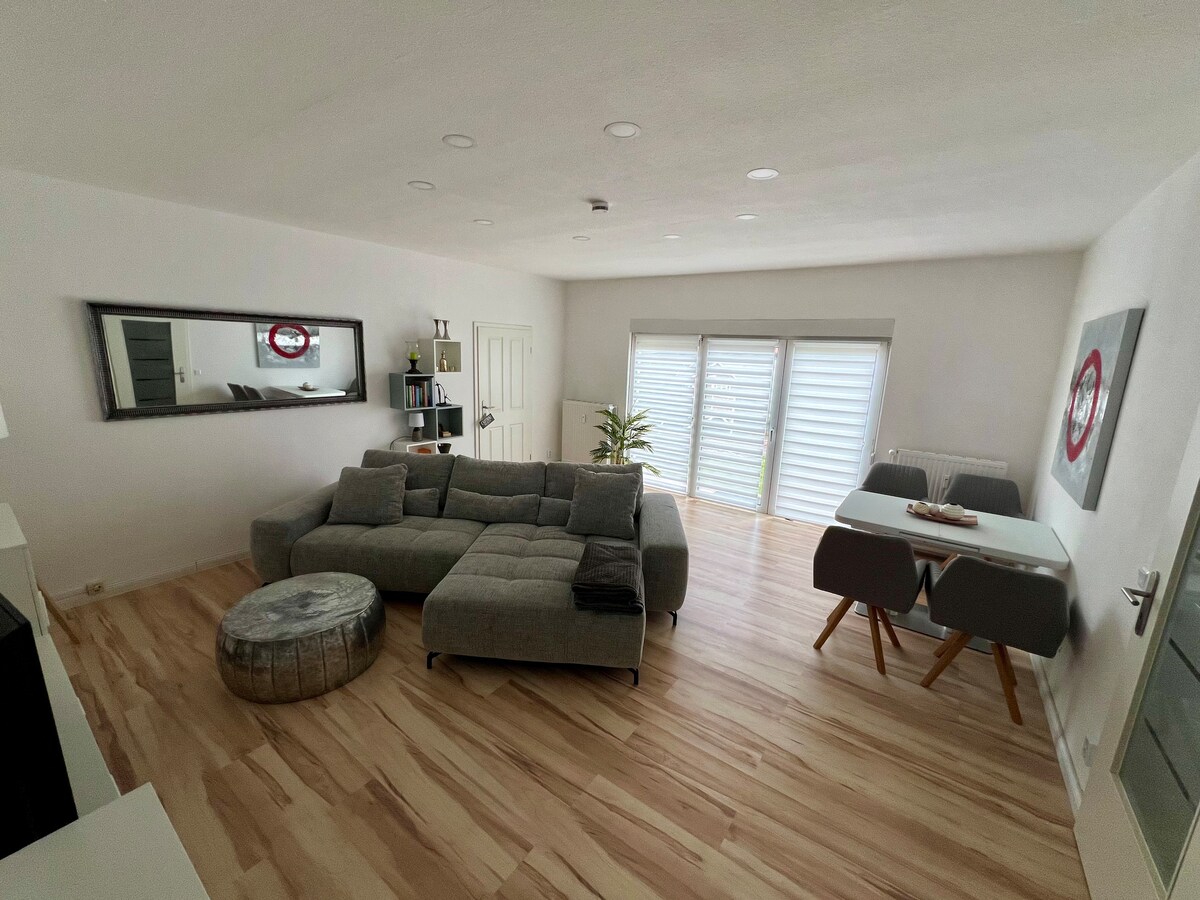 歡迎來到我們位於柏林附近霍佩加滕 (Hoppegarten) 的公寓(雙戶型房屋),該公寓非常現代、時尚、舒適,並且經過精心佈置,注重細節。 您可以獨享100平方米的空間,享受輕鬆的假期或商務住宿。從公寓步行2-3分鐘即可抵達S 5號S-Bahn列車站以及REWE和DM超市。您可以在25分鐘內到達市中心,無需轉車。S-Bahn 每天 24 小時運行。
