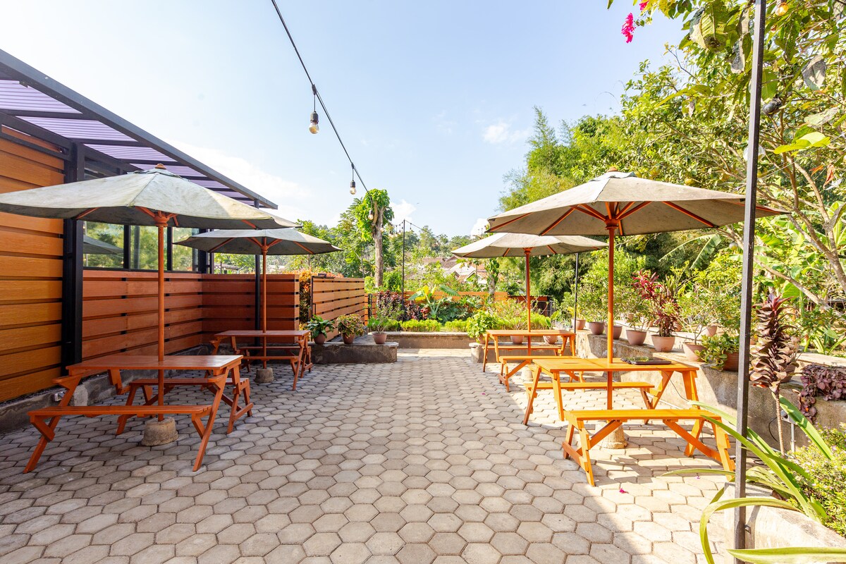 歡迎來到Anteng Villa ,坐落在萬隆山腳下的寧靜隱蔽處。 放鬆身心,欣賞迷人的花園和山景、私人泳池和舒緩的按摩浴缸。 非常適合家庭、情侶或朋友入住,享受戶外用餐、篝火和星光明媚的夜晚。 擁有159Mbps的快速WiFi和專用工作空間,也非常適合遠距工作!💻
