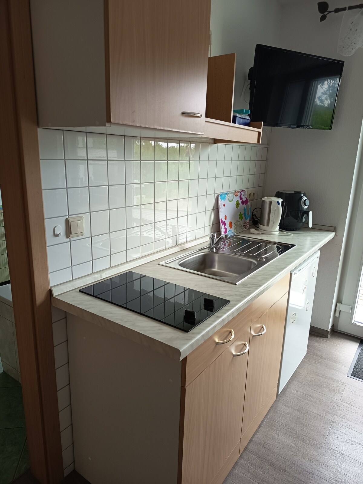 明亮、友好的度假公寓,配有客廳/臥室和兒童房、廚房和浴室,獨立位於一座歷史悠久的蘆葦屋頂農舍中,坐落在博登湖畔,可俯瞰Schoritzer Wiek。它位於一樓,舒適且設備簡單。值得注意的是我居住的地方的美麗與寧靜。我是當地的房東,在這裡有我的藝術工作室。房子後面有一個花園。