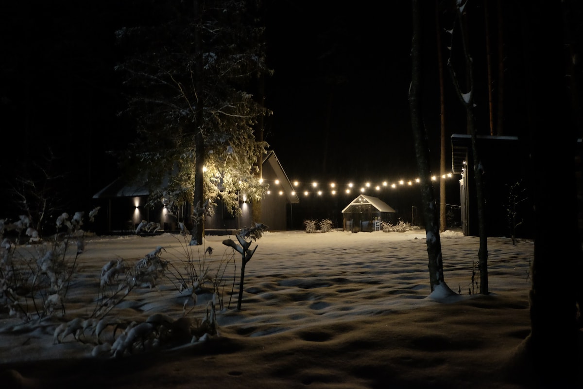 Relax in our private forest cabin with a complimentary hot tub under the stars — sauna available upon request for an extra fee. Private forest cabin near Līgatne, perfect for couples and nature lovers. Total silence, no neighbors — just forest and wildlife. Enjoy a free hot tub under the stars, cozy evenings by the fireplace, movie nights with an indoor projector, and outdoor dinners using the grill or pizza oven. Ideal for romantic getaways, digital detox, and peaceful nature retreats.