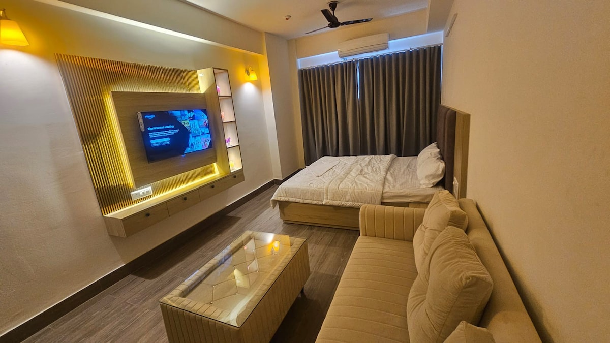 Supernova Homestay是位於Noida的優質單間公寓。 非常適合情侶和商務旅客,提供優雅的室內裝潢、舒適的加大雙人床、現代化的浴室、小廚房、高速Wi-Fi和安靜的高樓氛圍。 專業維護、安全,非常適合短期或長期住宿。 立即預訂,享受城市上方的時尚住宿。