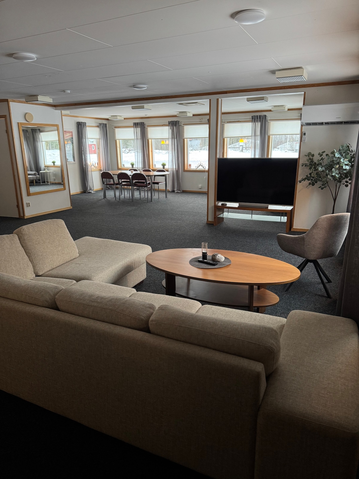 非常適合家庭和通勤者。 四間臥室、兩間配備兩張床的房間和兩間只有一張床的房間。 目前,其中一間有兩張床的房間有雙人床,但可應要求分開。 包含床單和毛巾。 兩間浴室、一間淋浴間、設備齊全的廚房、有電視和WiFi的客廳。 溫室可放鬆身心,以及其他。 戶外有洗衣機。 實用的住宿,有足夠的空間,適合長期住宿和每週通勤。