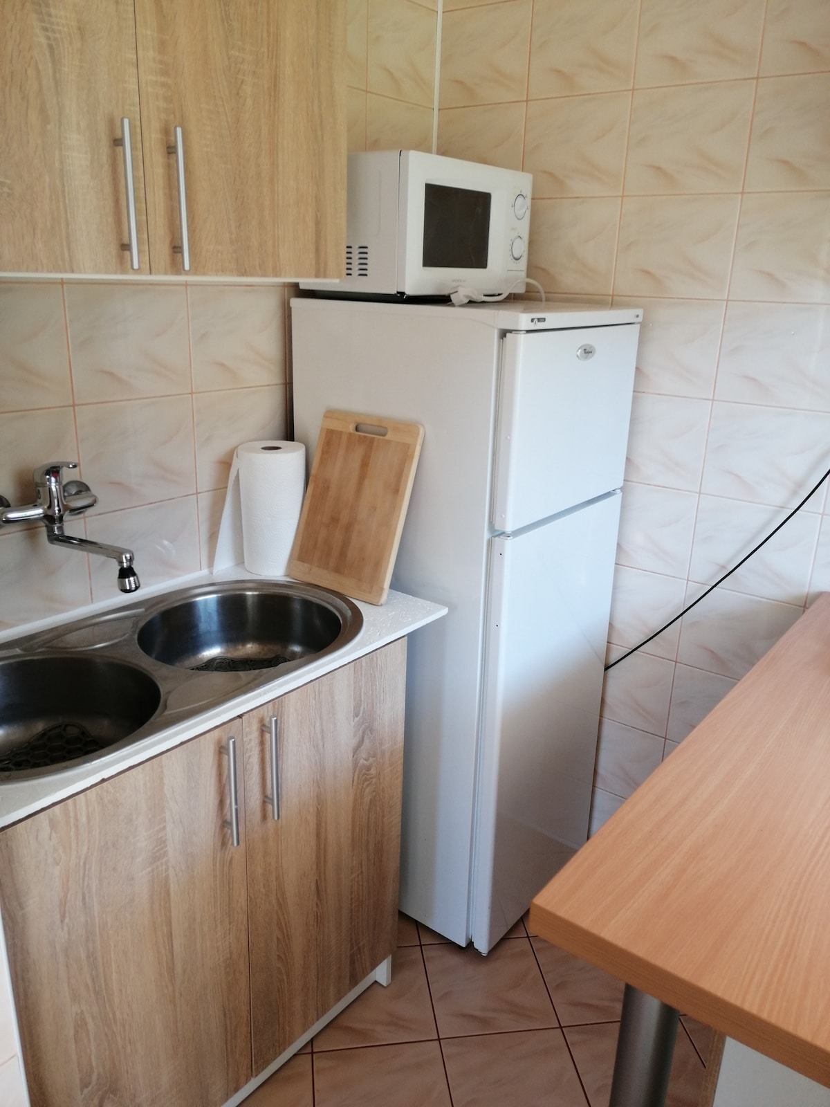 Zapraszamy do 4 osobowego apartamentu po remoncie składającego się z salonu z dwoma kanapami z aneksem kuchennym - nowa kuchnia Ikea oraz łazienki z prysznicem. Kuchnia jest wyposażona w płytę elektryczną i ekspres ciśnieniowy. Wejście do apartamentu od strony tarasu. We wspólnym użytkowaniu z gospodarzami jest rozległy, słoneczny taras z grillem gazowym. Dla aktywnych rejsy motorówka po zatoce oraz organizacja kursów pływania wake i kitesurfing. W pobliżu delikatesy, do plaży jest tylko 1 km.