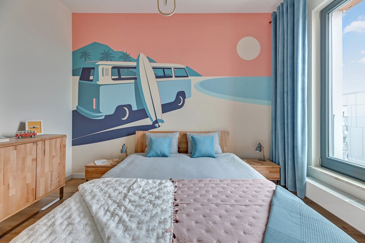 獨立浴缸、陽臺和時尚的室內裝潢—非常適合情侶或有孩子的家庭入住! 此公寓配有一間臥室和一張沙發床,最多可供 4 位房客舒適入住。 現場設施包括健身房、桑拿房、屋頂露臺和遊樂場。 位於格但斯克舊城區和莫特瓦河附近,非常適合浪漫度假或家庭入住。