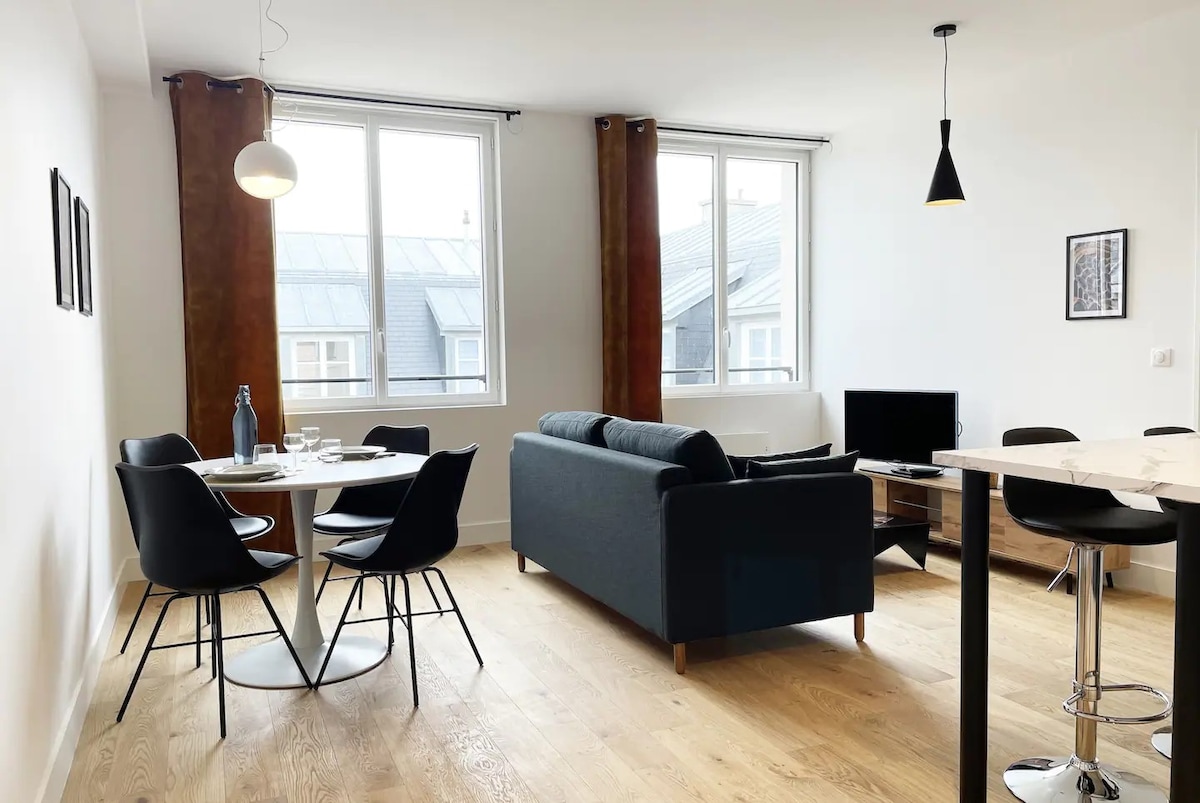 Bienvenue dans notre appartement 2 pièces de 45 m² proche hyper centre, à 7 minutes de la gare et 10 minutes de la cathédrale à pied, idéal pour un séjour confortable et relaxant pouvant accueillir jusqu’à 4 voyageurs. Entièrement rénové en Juillet 2024, cet appartement lumineux et moderne se trouve au premier étage d'une petite résidence de trois étages. Il offre une agréable hauteur sous plafond de plus de 3 mètres et est traversant pour une belle luminosité tout au long de la journée.