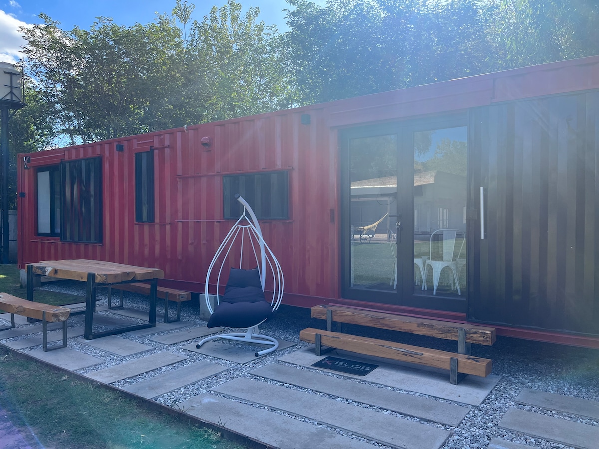 Espacio de descanso cómodo y tranquilo. Es una construcción iluminada y con buena ventilación, con una kitchenette con todas las comodidades para disfrutar el espacio de desayuno. La sala de baño invita a una relajante inmersión de espuma ideal para viajeros que recorren las rutas nacionales N 7 y N 33. Posee cochera abierta al ingreso de la casa. El barrio posee bajo tránsito vehicular y sin ruidos externos.
